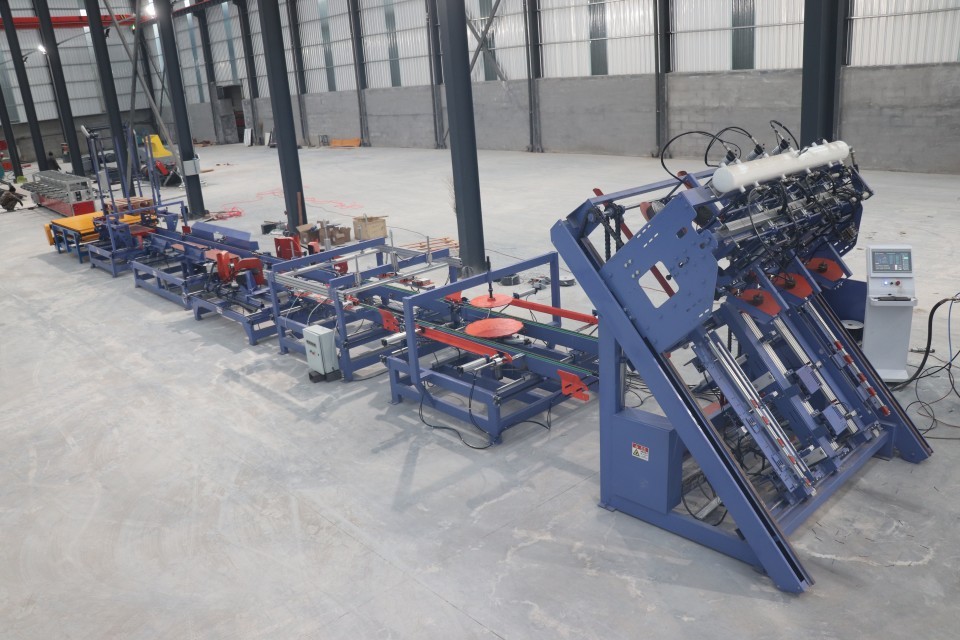 A: Thanks to the fully automatic integration of the nailing, branding, and stacking units, this line typically requires only 2 to 3 operators to oversee the PLC console and manage raw material loading.